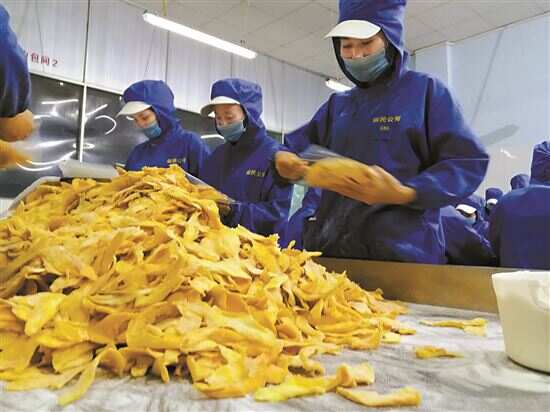■芒果季,广西百色田阳区的芒果熟了。务工群众在包装芒果干。 |