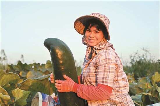 @汕尾市陆丰博美镇点石村 农户卓秀娟在田里给冬瓜包上报纸,防止天气太冷冬瓜冻坏。 |