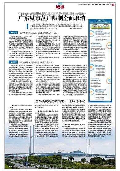 到2035年,除个别超大城市中心城区外 广东城市落户限制全面取消