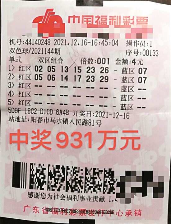 新快报讯 记者陆妍思 通讯员谭木娇报道 近日,阳江市福彩市场流传这样一段佳话:阳春马水不但盛产马水桔,还盛产双色球一等奖!原来,今年9月9日,马水镇中出过一注1000万元的头奖,这是阳江市福彩今年中出的第二个一等奖。时隔仅三个多月,又在同一个镇上产生了第三个双色球一等奖——12月16日,该镇另一个投注站中出一注头奖,奖金931万元。 一时激动搞错兑奖流程 12月16日,第21144 期开奖,摇出中奖号码为:红球“02、05、13、15、23、26”;蓝球“07”。全国中出一等奖5注,单注奖金931万多元。其中2注为一等奖特别奖,单注奖金为1863万多元(含派奖931万多元)。广东中出1注931万多元一等奖,落户阳江,中奖彩票是一张扫描往期的4元2注单式票,由阳春市马水镇人民路81号的44140248投注站售出。可惜中奖者的单票投注金额未满20元,遗憾错过参与12亿元大派奖的机会。 当晚中奖消息传出后,阳江福彩市场一片哗然:三个月前,该镇刚中出一个双色球一等奖,现在又中出一个,这名幸运儿到底会是谁呢? 每次中出大奖,阳江市福彩中心的工作人员都在翘首等待幸运儿现身和大家分享中奖喜悦。12月17日下午,市福彩中心便迎来了风尘仆仆的大奖得主李先生(化名)。 李先生一进来,便跟工作人员腼腆地解释:当天早上起来,习惯开奖第二天对奖的他打开手机查看前一晚的开奖信息,发现自己中了大奖。购彩二十多年,从未中过大奖的他激动不已,甚至有点手足无措。因担心夜长梦多,于是他便小心翼翼地带着彩票,急匆匆地赶往位于广州的省福彩中心。面对如此猴急的中奖者,省福彩中心的工作人员哭笑不得,告诉他搞错了兑奖流程,超过100万元以上的中奖者,要先在当地市福彩中心进行验票手续之后,才能到省福彩中心办理兑奖手续的。于是,他二话不说又立刻折返回阳江市福彩中心。 始终坚持原则理性购彩 阳江市福彩中心的工作人员给他递上一杯茶,李先生这才慢慢跟大家分享他的购彩心得及中奖喜悦。 当天早上打开手机,看到那注熟悉得不能再熟悉的号码出现在中奖号码里时,李先生瞬间觉得脑子一热,激动到感觉心脏像突然“骤停”了一样。他说,购彩二十多年,并不是没有幻想过中奖的情景,但是那么渺茫的事情,他从没有再往细节里想,也完全不知道万一中出大奖要怎么去兑奖,所以才闹出了这么一个大笑话。李先生还表示,幸好他不是开奖当晚查看信息,否则以他的心理承受能力,这个消息会直接导致他一夜无眠。 李先生介绍,他平时购彩都是以守号为主,二十多年来,只中过一些小奖,从未中过大奖,二等奖都没中过。太长时间连小奖都没中的时候,他也曾想过放弃,但长期购彩已成习惯了,不买吧,又总觉得少了点什么。于是,他尽量将购买金额控制在10元内。即使近日福彩市场正在如火如荼地开展“双色球”12亿大派奖活动、大奖小奖都翻番的情况下,李先生仍然坚持自己的购买方式,也不加注或加倍。此次中奖的号码中,红球“6”他守了三四个月,而蓝球“7”则守了两年多。 根据近日双色球正在开展的促销活动规则,如果当期单票金额超过20元(含)的一等奖中奖彩票,他这次可以获得双倍的中奖奖金。当工作人员问他是否后悔当时购彩没有追加到20元时,李先生连忙摆摆手说,能中得1注百万大奖已是万幸,人生就别再贪求太多了。 感谢福彩带来年终大奖 至于奖金如何安排,李先生说,由于幸福来得太突然,他还没来得及细细考虑如何使用这笔钱,但有一点可以肯定的是,以后的生活肯定会与以前有所不同。他说,非常感谢福彩给了他一份这么丰厚的年终大礼。作为一名老彩民,这次中奖也更让他坚信福彩的公正性、真实性,同时也让他明白了坚持的重要性。倘若当年动摇信念放弃购彩,那么他就不能享受到今天的幸福。李先生还说,即使中了这次大奖,他还是会坚持按照自己的购彩原则继续支持福彩事业的发展。