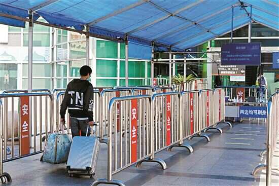 ■旅客拖着行李进入天河汽车客运站。 |