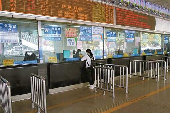 ■芳村客运站,乘客在买票。 |
