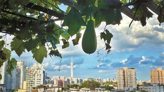 梅姨在楼顶天台种植的蒲瓜长势喜人,满眼新绿不仅给生活增添了乐趣,也成为城市上空一道独特的风景。 |