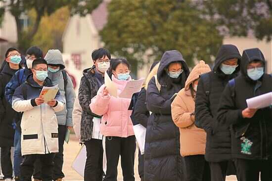 ■12月25日,2022年全国硕士研究生招生考试拉开帷幕,全国报名人数达457万,相比去年增加80万人。在江苏理工学院考点,考生在考前进行最后复习。新华社发