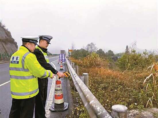 ■韶关交警在易结冰路段放置警示牌,提醒过路司机注意安全。 |