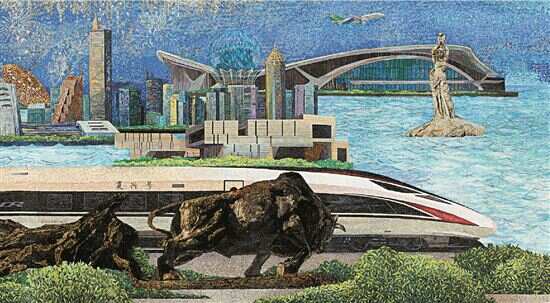 ■齐喆 世纪潮涌(局部) 马赛克镶嵌 |