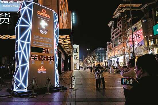 ■1月4日,北京2022年冬奥会迎来开幕倒计时一个月。人们在倒计时牌前拍照。新华社发 |