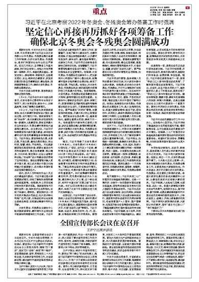 习近平在北京考察2022年冬奥会、冬残奥会筹办备赛工作时强调 据新华社电 中共中央总书记、国家主席、中央军委主席习近平近日在北京考察2022年冬奥会、冬残奥会筹办备赛工作时强调,办好北京冬