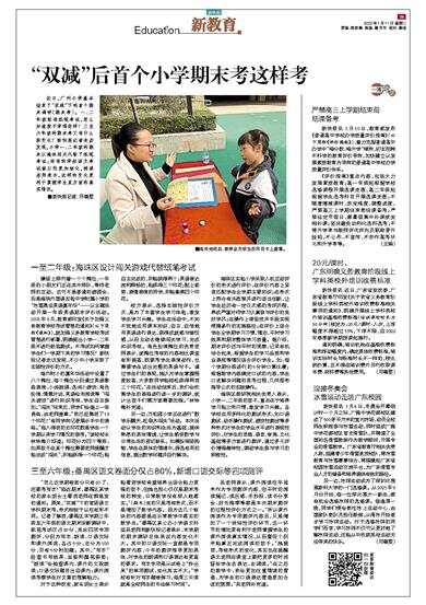近日,广州小学基本结束了“双减”下的首个期末调研(期末考)。一、二年级取消纸笔考试,怎么知道孩子学得怎样?三至六年级的期末考又有什么新变化?新快报记者走访发现,小学一、二年级的期末以趣味闯关代替