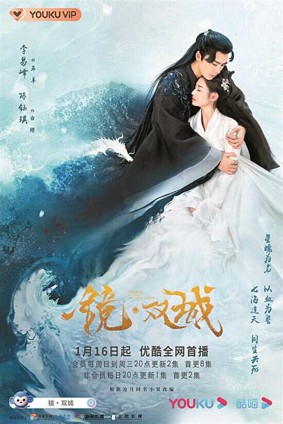 新快报讯 记者徐绍娜报道 改编自沧月同名小说,由导演游达志执导,李易峰、陈钰琪、郑业成领衔主演的电视剧《镜·双城》将于1月16日首播。在最新发布的海报中,李易峰饰演的海皇苏摹和陈钰琪饰演的空桑白王白璎重现“星魂海誓”名场景。预告片也围绕二人的羁绊展开,呈现花神树下一眼万年、纵身一跃孤寂百年等名场面。 《镜·双城》以中国传统文化为底蕴、上古神话传说为基础,徐徐展开一段充满宿命无奈却又浪漫悲壮的虐爱史诗。苏摹肩负海皇重任,与一生挚爱空桑白王白璎等,一同揭开了云荒背后的真相——泉先、空桑、沧流三部间的千年纠葛。 在“星魂海誓”海报中,海皇苏摹一袭黑衣,怀中紧紧拥抱着虚弱的白璎。“星魂海誓”作为故事中的名场面,苏摹的一吻将自己与白璎的命运改变,他们延续百年的情感与命运更紧紧纠缠。相爱却无法相守的两人,宿命般悲壮的一吻,十分感人。 预告片则首次展现了苏摹白璎较为完整的百年纠葛:一个是从地位卑微的鲛人成长到引领泉先的海皇,一个是从被人保护的命定太子妃到不得不肩负重任的白王,他们因本心的吸引而相知相爱,又因前人的龃龉而被迫分开。当百年后重新相遇,两人已各自背负沉重的使命,需要在天下苍生与挚爱之间做出选择。