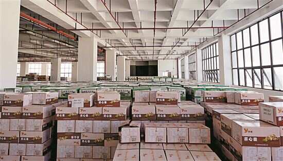 ■微蚁云仓的仓库内,堆满了为年货节备货的坚果。 |