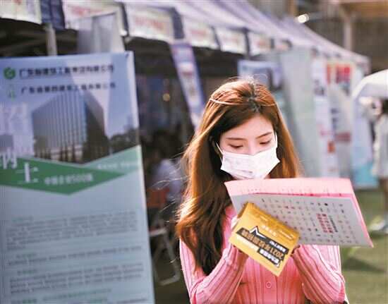 ■广东去年实施高校毕业生就业创业十大行动,开展线上线下各类招聘活动2000多场次。图为一名大学生在应聘。 新快报记者 李小萌/摄 |