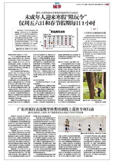 腾讯、网易相继发布寒假网络游戏防沉迷规定 春节临近,广州中小学生迎来了寒假假期。这是去年8月30日国家新闻出版署下发“史上最严防沉迷新规”《关于进一步严格管理 切实防止未成年人沉迷网络游戏