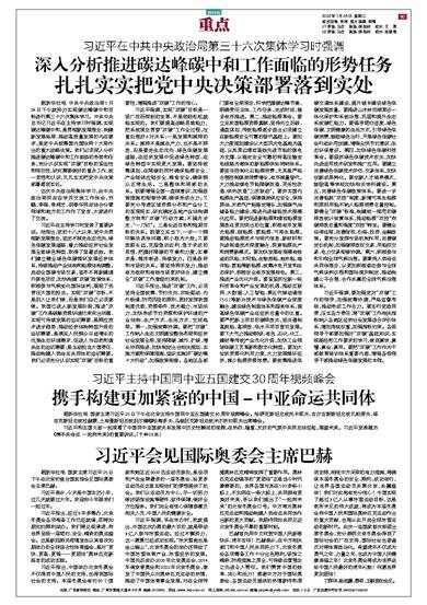 习近平主持中国同中亚五国建交30周年视频峰会 据新华社电 国家主席习近平25日下午在北京主持中国同中亚五国建交30周年视频峰会。哈萨克斯坦总统托卡耶夫、吉尔吉斯斯坦总统扎帕罗夫、塔吉克斯坦