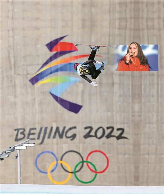 ■昨日,在北京首钢滑雪大跳台举行的北京冬奥会自由式滑雪女子大跳台决赛中,中国选手谷爱凌在最后一跳完成超高难度动作,逆转夺得冠军。新华社发
