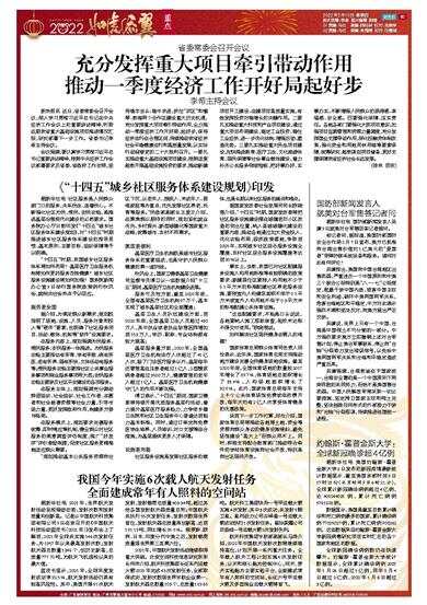我国今年实施6次载人航天发射任务全面建成常年有人照料的空间站