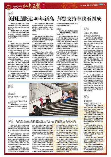 据新华社电 美国劳工部10日发布的数据显示,今年1月份美国消费者价格指数(CPI)同比上涨7.5%,创40年来最高水平。 通货膨胀率节节上升,新冠疫情凶猛,让总统约瑟夫·拜登的民意支持率连