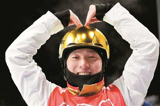 ■昨晚,在北京冬奥会自由式滑雪男子空中技巧决赛中,中国四朝老将齐广璞以完美一跳夺得中国代表团第7金,中国队取得该项目男女子比赛冠军以及混合团体亚军。新华社发