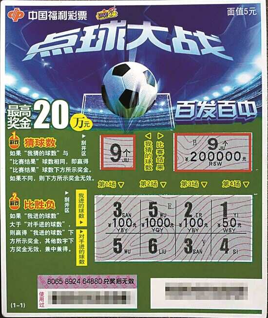 新快报讯 记者陆妍思 通讯员报道 踏入2022年以来,佛山彩民频频中出刮刮乐大奖。近日,多位幸运儿前往佛山福彩中心兑奖,其中不乏95后、00后等Z世代。1999年出生的小黄(化名)便中得“百发百中·点球大战”20万元头奖,他说自己购彩仅一个月,只玩刮刮乐,这仅是他第四次刮彩而已。 中奖当天,小黄走进投注站,看着琳琅满目的刮刮乐即开票,身为足球迷的他一眼就被“百发百中·点球大战”所吸引,于是买了两张。刮开第一张,中得5元,紧接着刮开第二张,大奖幸运降临! “我刮开‘我猜的球数’是9个,‘比赛结果’也是9个,再看看下面对应的金额居然是200000元!我不敢相信自己的眼睛,先仔细看了游戏规则,又请销售人员帮忙确认,再三确认中奖后,真的是超开心!”小黄乐呵呵地说道。 “说起来,我跟刮刮乐真的有缘,第一次玩刮刮乐时就中了100元,后来有空再去刮了两次,都是中了10元。没想到第四次玩竟然中了20万元,真是太幸运了!”小黄说,像他这种刚踏入社会的打工族,并没有什么积蓄,衷心感谢福利彩票给他送来的第一桶金。 中奖后,小黄第一时间与妈妈分享了中奖喜讯,妈妈也非常开心。办理完兑奖手续,小黄如愿拿到奖金,他激动地说:“对我来说,这笔幸运奖金可不是小数目,每月收到工资,哪怕分文不花,也需要存几年才能攒得到。我打算给家里买些新的家具家电,爸妈也开心极了,都夸我孝顺懂事。” 福彩刮刮乐以票种多样、玩法简单、即开即兑、返奖率高等特点赢得了广大彩友的喜爱。闲暇之余挑选几张刮刮乐刮着玩,已经成为当下年轻彩民流行的一种休闲娱乐新方式。大家在放松身心的同时,还有机会邂逅一份幸运。作为福彩刮刮乐的热销票种之一,“百发百中·点球大战”以其动感十足的票面设计及大奖频开的特点,一直备受彩民的喜爱。