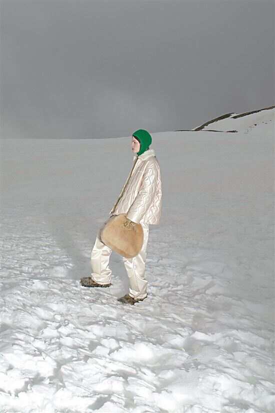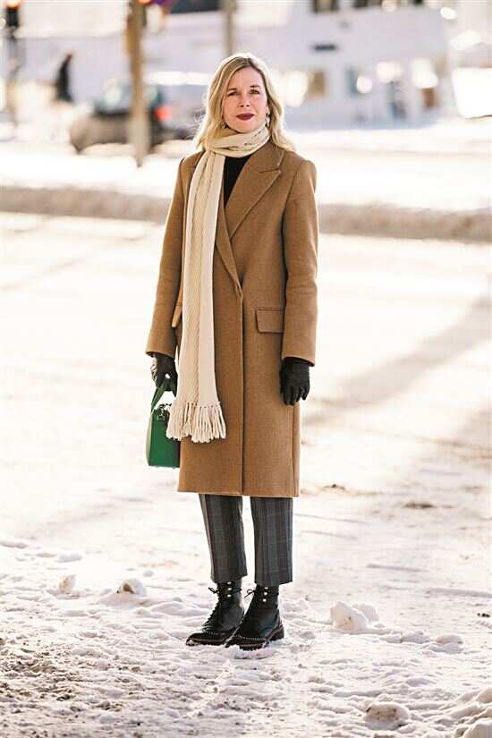 白色虽不适合在雪地里作为穿搭主色调,但可以作为过渡色,与其它浅色系搭配在一起。 |