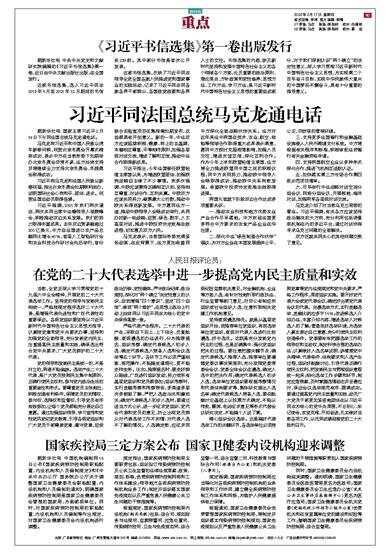 人民日报评论员: 当前,全党正深入学习贯彻党的十九届六中全会精神,开展党的二十大代表选举工作。坚持党的领导与发扬民主相统一,严格按规定程序选好二十大代表,是增强代表先进性和广泛代表性的重要