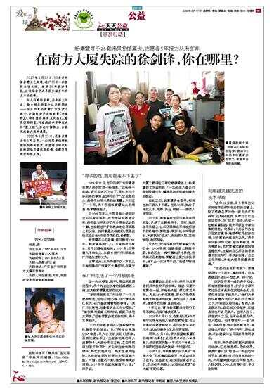 杨素慧寻子26载未果抱憾离世,志愿者5年接力从未言弃 2017年1月23日,50多岁的杨素慧合上双眼,在广州市一家医院与世长辞。终其26年跋涉寻找,这位母亲仍未寻获失踪多年的儿子徐剑锋。