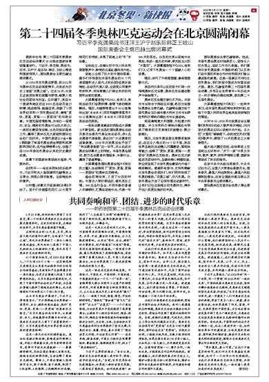 ——热烈祝贺第二十四届冬季奥林匹克运动会闭幕 人民日报社论 2月20日晚,绚烂的焰火照亮了北京夜空,第二十四届冬季奥林匹克运动会闭幕式隆重举行。在欢乐的海洋里,在难舍的告别中,北京冬