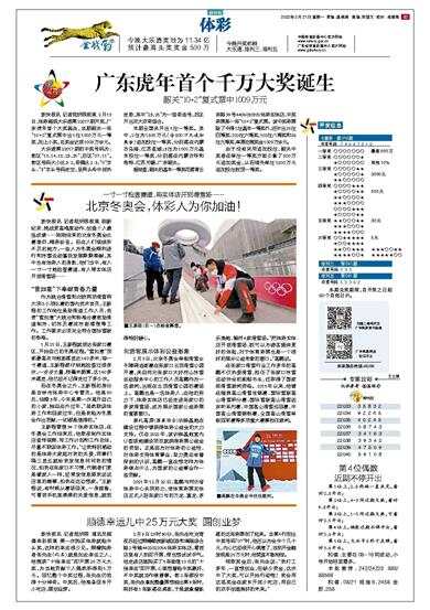 韶关“10+2”复式票中1009万元 新快报讯 记者陆妍思报道 2月19日,体彩超级大乐透第22017期开奖,广东虎年首个大奖诞生,当期韶关一张“10+2”复式票中出1注1000万元一等奖