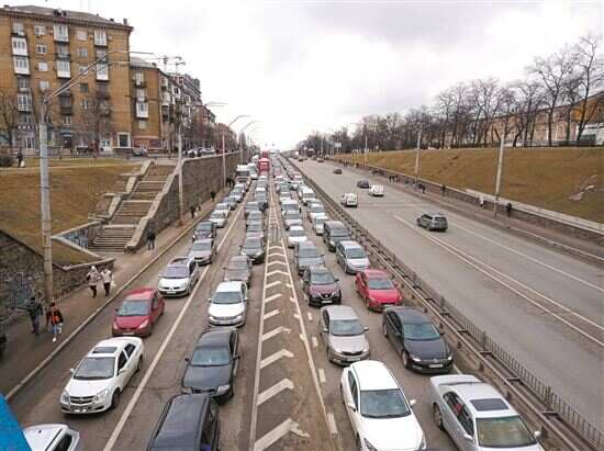 ■2月24日,在乌克兰基辅,出城方向的车辆排起长龙。新华社发 |