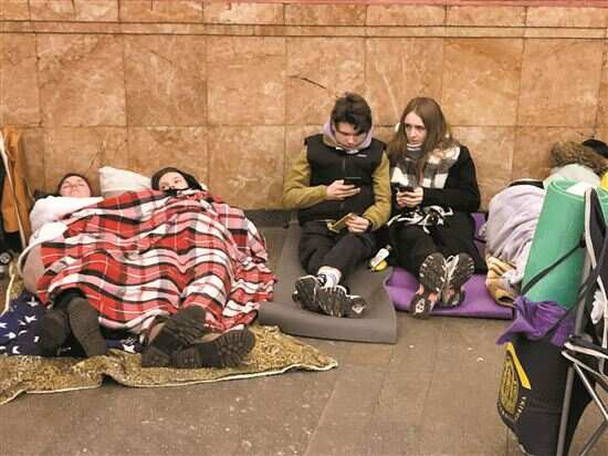 ■市民在乌克兰基辅一处地铁站内避险。 |