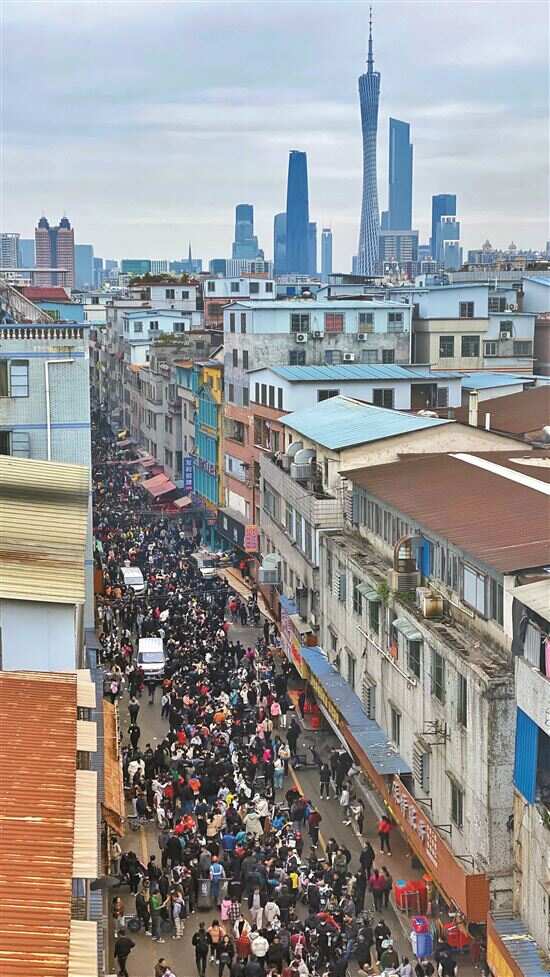 ▲大塘村的招工一条街位于广州的新中轴线上,不远处的珠江新城和广州塔清晰可见。每年元宵节刚过,这里便变得异常热闹,来自全国各地的外来务工人员都来到这里寻求一份工作,追逐属于他们自己的梦想。 |