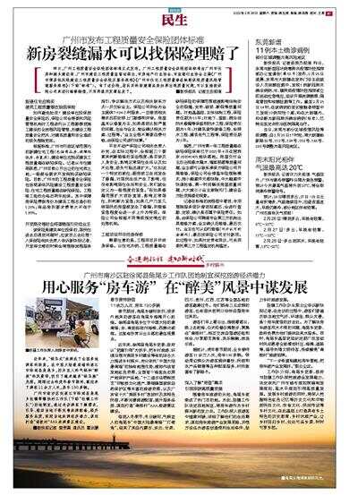 广州市发布工程质量安全保险团体标准 昨日,广州工程质量安全保险团体标准正式发布。广州工程质量安全保险团体标准由广州市住房和城乡建设局、广州市建设工程质量监督站提出,市房地产行业协会、市监理