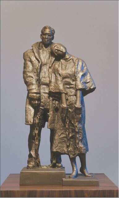 ■特邀作品 广州市美协顾问 唐大禧《周文雍与陈铁军》雕塑29cm×17cm×61cm |
