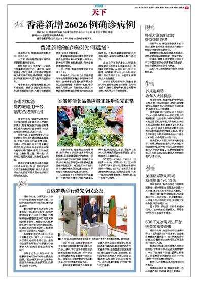头条 据新华社电 香港特区政府卫生署卫生防护中心27日公布,截至当日零时,香港新增26026例新冠肺炎确诊病例。 据香港医管局介绍,过去24小时,再有83名确诊患者离世。