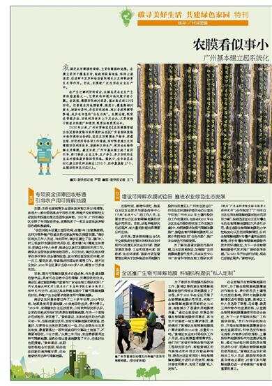 广州基本建立起系统化农业农村固体废弃物回收网络 碳寻·广州减塑篇 农膜是农用薄膜的简称,主要有棚膜和地膜。农膜主要用于覆盖农田,能起到提高地温、保持土壤湿度、促进种子发芽和幼苗较快增