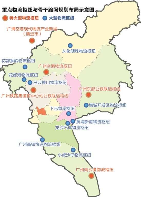 《广州市“十四五”现代物流枢纽及产业发展土地利用规划(征求意见稿)》出炉 近日,《广州市“十四五”现代物流枢纽及产业发展土地利用规划(征求意见稿)》在市规划和自然资源局进行征询意见公示。其中提到,“十四五”期间,广州将建设5个特大型物流枢纽、10个大型物流枢纽和多个物流骨干节点。同时,支撑物流枢纽布局及集聚发展范围规定,确定四级物流和供应链体系,强化政策支持大力保障用地。 ■新快报记者 陈慕媛 愿景 实现物流产业转型升级 为落实国家物流枢纽布局和建设战略要求,增强广州全球重要综合交通枢纽定位,支撑《广州市交通物流融合发展第十四个五年规划》提出的“5+10+N”物流枢纽布局体系和集聚发展范围划定,广州市规划和自然资源局编制了《广州市“十四五”现代物流枢纽及产业发展土地利用规划》(下称《规划》)。 《规划》指出,2020年广州社会物流总额60653.46亿元,同比增长3.31%,并培育出一批专业化、平台化物流供应链企业。与此同时,物流产业空间发展特征明显。形成“枢纽+通道+网络”物流体系,包含广州白云国际机场货运枢纽,大朗、下元等14个铁路物货运枢纽站,神山、白云货运站等大型公路货运场站,广州港南沙港区、新沙港区等港口货运枢纽和作业区。形成大集聚、小分散的集聚特征。物流产业主要集中分布在白云、黄埔、花都、南沙等四个行政区及广州空港经济区。 《规划》指出,通过优化物流产业空间布局、多种方式增加土地供应,提升物流产业用地效率和物流产业集聚水平,强化现代物流发展基础,提升国际物流中心与综合交通枢纽功能,实现物流产业转型升级。 布局 形成“5+10+N”物流枢纽布局体系 “5+10+N”物流枢纽体系,包括5个特大型物流枢纽、10个大型物流枢纽和N个物流骨干节点。将形成以特大型物流枢纽为湾区核心、大型物流枢纽为城市极点、若干个物流骨干节点为片区中心、配送节点为社区终端的四级物流和供应链体系。 5个特大型物流枢纽包括广州空港物流枢纽、广州南沙港物流枢纽、广州东部公铁联运枢纽、广清空港现代物流产业新城(清远市)和广州铁路集装箱中心站公铁联运枢纽。 10个大型物流枢纽分别是白云神山物流枢纽、广州高铁快运物流枢纽、黄埔新港物流枢纽、下元物流枢纽、花都港物流枢纽、花都狮岭物流枢纽、增城开发区物流枢纽、小虎沙仔物流枢纽、从化明珠物流枢纽、龙沙汽车物流枢纽。 与此同时,“十四五”时期,优先建设9个物流骨干节点,其中扩容提升鱼窝头、知识城2个物流骨干节点,新建龙溪、大岗、从化南、九龙、街北、钟落潭、太和等7个物流骨干节点。 按照《规划》,将整治提升主城区存量物流用地,对不符合城市发展需求、环境污染大、影响区域交通的物流用地进行清理疏散;对符合城市发展需求、经济效益较好、城市发展必须的物流配套园区及物流用地进行改造提升;将物流服务系统建设与配套设施建设有机融合,完善物流产业链模式。 保障 推动物流用地向已划定产业区块集中 在物流用地供给方式层面,《规划》支持利用存量资源新增物流用地供应。鼓励通过中心城区物流园区、批发市场等存量资源的改造提升建设物流和数字经济融合发展的特色产业园。支持利用存量房产和土地资源建设电子商务、快递物流项目。同时,鼓励通过集体土地使用权流转提高用地供给。对于符合条件的经营性集体建设用地,鼓励土地所有权人按规定通过土地使用权出让、出租、政府统租等方式提供给其他单位或个人用于现代物流项目建设使用。 在用地分类保障方面,规划引导“交通+物流+产业”的发展模式。将物流枢纽等用地纳入国土空间规划和相关专项规划,统筹规划和建设。保障特大型和大型物流枢纽用地。特大型物流枢纽按照国家、省、市要求,在复合国土空间规划管控要求下落实用地。大型物流枢纽和骨干节点由各区按照退让生态保护红线,永久基本农田、尽量少占或不占耕地原则在符合国土空间规划管控要求下落实用地。 《规划》指出,加强物流园区用地规划管理,推动物流用地向已划定的产业区块集中,提升物流产业用地节约集约用地效率。规范现代物流园区和物流项目的规划设计、建设和服务。统筹物流园区及周边道路管网水电等基础设施用地。并强化现代物流园区发展用地保障。鼓励物流仓储用地通过弹性年期出让、先租后让、租让结合等多种方式供地。 5个特大型物流枢纽 广州空港物流枢纽:依托白云国际机场及北端区域、机场综合保税区南区,建设空港型国家物流枢纽,打造亚太航空物流中心、临空经济产业创新示范区。 广州南沙港物流枢纽:依托南沙港区、南沙港站、南沙综合保税区等,建设港口型国家物流枢纽,打造华南江海公铁多式联运示范基地。 广州东部公铁联运枢纽:围绕增城西铁路站场,建设生产服务型和陆港型国家物流枢纽,大湾区国际班列集结中心,形成大湾区珠江东岸科技创新和先行制造业供应链组织中心。 广州铁路集装箱中心站公铁联运枢纽:依托广州铁路集装箱中心站、大朗货站、江村编组站,打造商贸型和陆港型国家物流枢纽、亚欧跨境物贸支点、国际班列集结中心、国家铁路多式联运基地。 广清空港现代物流产业新城(清远市):依托京广铁路源潭站,建设商贸服务型国家物流枢纽,