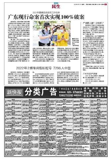 2021年圆满完成各项工作任务 新快报讯 记者林钢威 通讯员粤公宣报道 现行命案首次实现100%破案!2月28日,记者从广东省公安厅获悉,2021年全省公安机关扎实开展“我为群众办实事”实