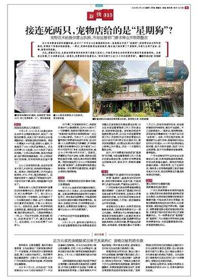 宠物店未能提供营业执照,市场监管部门要求停业并限期整改 近日有消费者向新快报爆料称,在位于广州市白云区高翔路附近的一家宠物店买到了“星期狗”,狗狗带回家后很快便病死,而商家只同意加钱换宠物。一周后,更换的宠物狗也接连病死,随后她又换来第三只宠物狗,目前已出现不进食、拉稀,病情有待观察。 对此,宠物店回应,此前该消费者领回家的两只宠物已经死亡,可能是狗狗生活的环境有问题而导致病毒传染。此前经过协商,已与消费者达成一致意见,免费换狗并签署协议,“狗有问题可以在24小时内免费更换”。 ■新快报记者 林钢威 投诉 狗狗买回家后几天就死亡 今年2月,七七(佚名)在通过某知名点评平台搜索宠物店时,添加了一宠物店的微信,在其介绍下来到白云区高翔路附近一家宠物店购买宠物狗。现场一只博美犬十分可爱,深得七七喜欢,于是她花了2400元购买该博美犬。并且还花费100元检测、1500元购买了该店的狗粮。“之所以购买狗粮,是因为商家称,他们喂的狗粮都是统一的,必须购买他们的狗粮,否则狗狗带走后就不管了。” 让七七没有想到的是,在成为铲屎官不到几天的时间,狗狗很快便奄奄一息。她表示,狗狗回家第二天开始就出现异样,不叫、不吃,随后便病倒了。在商家的指导下,她购买了药物进行治疗,可依旧无济于事,很快,狗狗就撑不住死去了。 按照此前七七购买宠物狗时签署的《活体销售协议》,买家享受“质保30天,死亡免费领养一只”。伤心的七七只好再选择一只宠物狗,这次她挑中了一只活蹦乱跳的小黑柴,由于小黑柴是店内最贵的宠物狗,于是七七再加价300元。在购买后,她第一时间带狗狗去医院检查,竟然检查出其带有冠状病毒,随后便住院治疗。小黑柴和博美犬一样,从一开始不吃东西,再到拉稀、呕吐,在医院坚持了7天,最后还是走了。在这期间,七七为此花费了2000多元。 对于第二只宠物狗的死亡,商家依旧表示可以继续换狗,这次七七挑中了一只萨摩耶,商家却仍要再加收300元,“宠物狗价格更低反倒得倒贴钱”,这让七七难以接受。无奈之下,七七选择报警和拨打消费者热线进行求助,经过协调,七七免费领养这只萨摩耶,并与商家签署《活体销售协议》,其中提到“24小时内可回甲方(商家)处换其他活体,超过24小时不换与甲方无关”。回家后,萨摩耶也开始不进食、拉稀,虽然经过医院检查没问题,但医生表示狗狗还需观察。狗狗的接连死亡令七七不禁质疑商家出售“星期狗”,此前她曾向商家提出赔偿她一半的费用但遭到拒绝,希望可以得到合理的赔偿。 回应 宠物店:可能是狗狗生活环境有问题,已免费换狗 针对七七连续买到问题狗的情况,宠物店工作人员表示,店内的狗都很健康。此前该消费者领回家的两只宠物已经死亡,肯定是存在病毒的,可能是狗狗生活的环境有问题而导致病毒传染。他表示,此前经过协商,已与消费者达成一致意见,免费换狗并签署协议,“狗有问题可以在24小时内免费更换”。 广州市白云区市场监督管理局: 停业整改 3月1日上午,新快报记者向白云区市场监督管理局反映消费者遇到的问题以及该宠物店未悬挂营业执照,白云区市场监督管理局工作人员快速出动,到该宠物店检查。该宠物店现场未能提供营业执照,白云区市场监督管理局工作人员按照《无证无照经营查处办法》对该店开具《责令改正通知书》,要求其限期整改,在《营业执照》未办理好之前停止对外营业,并在一个月期限内整改完毕。 此外,对于消费者反映购买到“星期狗”的问题,市场监督管理局工作人员表示后续会跟进处理,也将针对消费者提出的赔偿诉求,联系双方,积极沟通解决。 走访 售后保障期不同,期限内可无条件退换 所谓“星期狗”,就是指当时买的时候,狗狗非常的精神、活泼可爱,可是饲养几天就开始生病,严重的会出现死亡。 广州的宠物市场给消费者提供哪些售后保障呢?记者来到了荔湾区芳村花鸟鱼虫新世界的宠物馆,这里有众多售卖猫狗的店铺,当问及购买宠物会有多长时间的保障期,几乎每一家店铺都给出不同的答案。 有宠物店店主表示,如果买到的宠物患有疾病,店家承诺消费者可以一周之内退换。消费者也可以将宠物先拿去商场里的宠物检测中心检测后再来交易,如果宠物检测出问题,检测费用则由卖家来承担,如果没问题,费用就由买家承担;有商家称,宠物售后最长可保障2个月之久;而有的商家则坦言,有些猫狗售卖的利润很低,售后不包退换。不少店家都表示,一般来说,猫狗等宠物,买回家能否健康存活7天是行业内的“金标准”。当然,不同价值的宠物,保障期都可以进行协商;根据商场内贴出的《协议书》显示,24小时内如果宠物出现问题,卖方无条件退换,购买7天内出现病情,卖方可免费提供宠物调理、寄养服务。 广州市动物诊疗行业协会会长陈瑜告诉记者,如果商家能提供保障期,时间当然是越长越好。猫狗的传染疾病潜伏期是一周到两周,过了这段时间,猫狗身上的传染病就跟之前的卖家没有太大关系,因此消费者应尽量选择信得过的商家。 点评 售出宠物涉及健康问题 商家需承担违约责任 广州大同律师事务所律师冯骏指出,宠物买卖纠纷是按照普通货物买卖去处理的,如果宠物店销售的宠物涉及健康问题,可能会涉及到合同瑕疵,宠物店需要承担相应的违约责任,比如更换宠物、承担相应的医疗