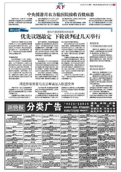俄乌代表团首轮谈判结束 据新华社电 俄罗斯与乌克兰两国代表团2月28日在白俄罗斯东南部靠近乌边境的戈梅利州举行谈判。谈判结束后,双方均表示,将各自返回国内进行磋商,为下一轮谈判做准备。据悉