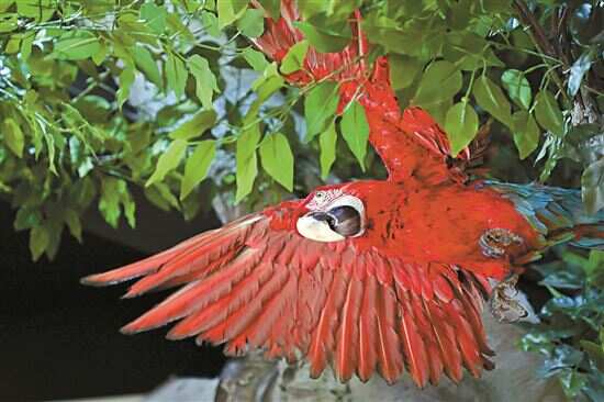 ■广州动物园科普长廊摆放的科普标本。 ■金刚鹦鹉标本。 |