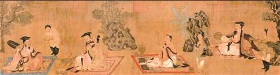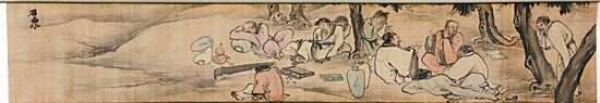 ▼唐,孙位《高逸图》,纵45.2厘米,横168.7厘米,绢本,上海博物馆藏 |