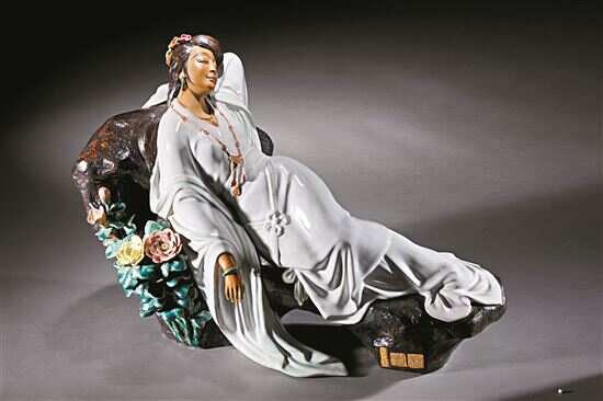 ■现代,史湘云醉卧芍药裀,陶塑,广东省博物馆供图 |
