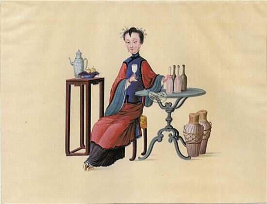 ■用洋酒杯品酒的中国女子,广州十三行博物馆藏,王恒冯杰伉俪捐赠 |