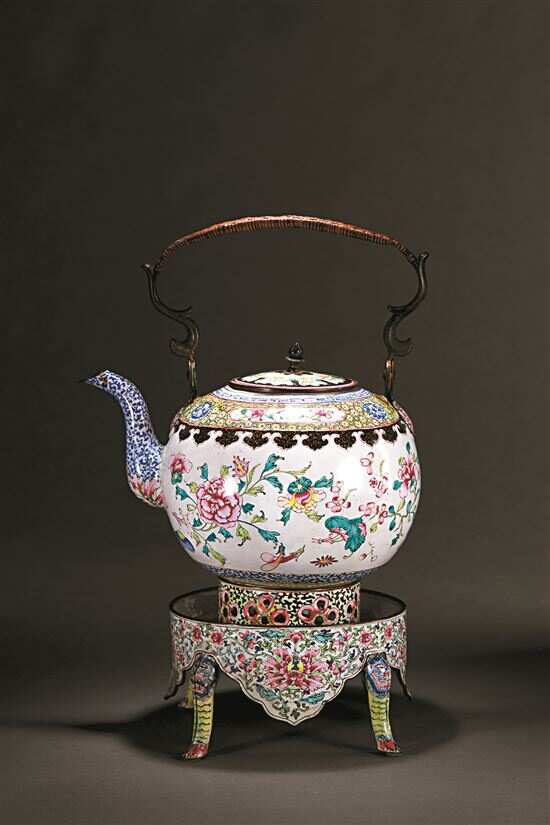 ■清乾隆 铜胎画珐琅花卉纹提梁壶及温炉 |