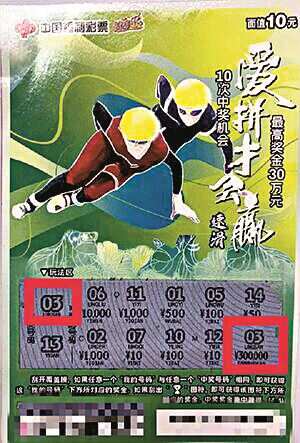 新快报讯 记者陆妍思 通讯员莫冠婷 曹欣然报道 刮刮乐“爱拼才会赢”是为宣传2022年北京冬奥会而设计的一套纪念形式的4联彩票,今年1月底才登陆清远市。近日,清远市佛冈县的44180613福彩投注站传出喜讯,该站一位幸运彩民刮出清远今年首个刮刮乐“爱拼才会赢”30万元大奖。中奖彩民苏先生(化姓)办理兑奖手续时,这位90后小伙喜不自禁地向工作人员谈起了自己的中奖经历。 苏先生说,他和女友都是从事金融行业,当天加班到晚上8点,一起回家途中路过福彩投注站,就花20元各买了一张面值10元的刮刮乐。 由于自己比较关注北京冬奥会,特别是爱看短道速滑项目,于是就购买了一张“短道速滑”票面的“爱拼才会赢”,刮开后竟然中了30万元的头奖。 苏先生称自己平时偏爱刮刮乐即开票,简单有趣,小奖不断,但这一回是头一次中大奖。
