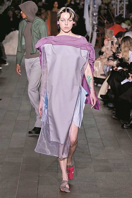 ▲通过与其它材质拼接,让薄纱也有了大廓形感,越发闪耀出朦胧美的光彩。 |