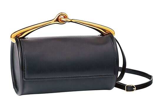 ▲Maximors Volupto小牛皮包袋,以圆柱造型搭配马衔形手柄,手柄为嵌入包袋大型圆环,复古优雅又摩登味十足。 |