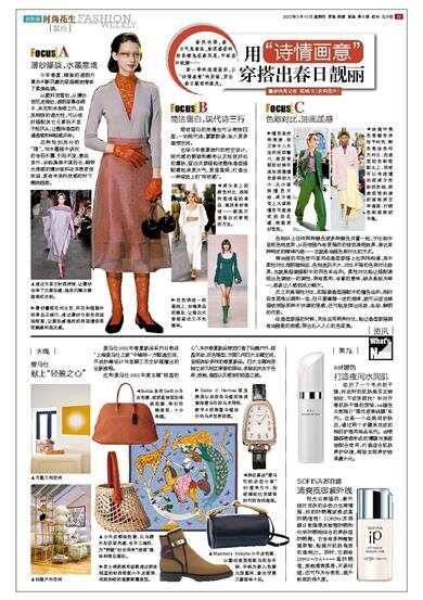 春风吹拂,春日气息渐浓,娇柔婆娑的枝条摇曳在春风里,平添些许妩媚…… 新一季的造型装扮,以“诗情画意”的穿搭,穿出春日靓丽的春光。 ■新快报记者 梁彧/文(资料图片) Focu