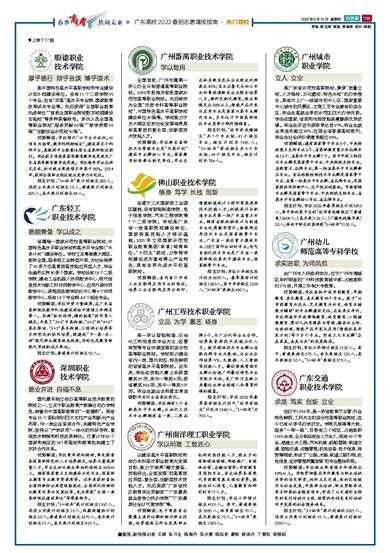 上接T17版 顺德职业技术学院 厚乎德行 辩乎言谈 博乎道术 是中国特色高水平高职学校和专业建设计划B档建设单位。设有11个二级学院55个专业,包含“双高”高水平专业群、国家教