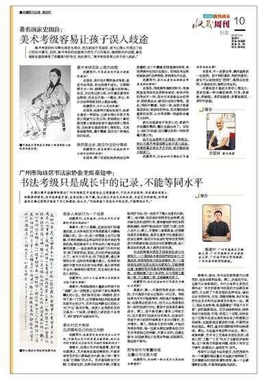 ■收藏周刊记者 梁志钦 长期从事书法教育的现任广州市海珠区书法家协会主席秦建中,不仅对书法创作、书法理论有深入的探索和研究,对书法考级方面,也有过深入的了解,他分别从书法艺术的本体,书法艺